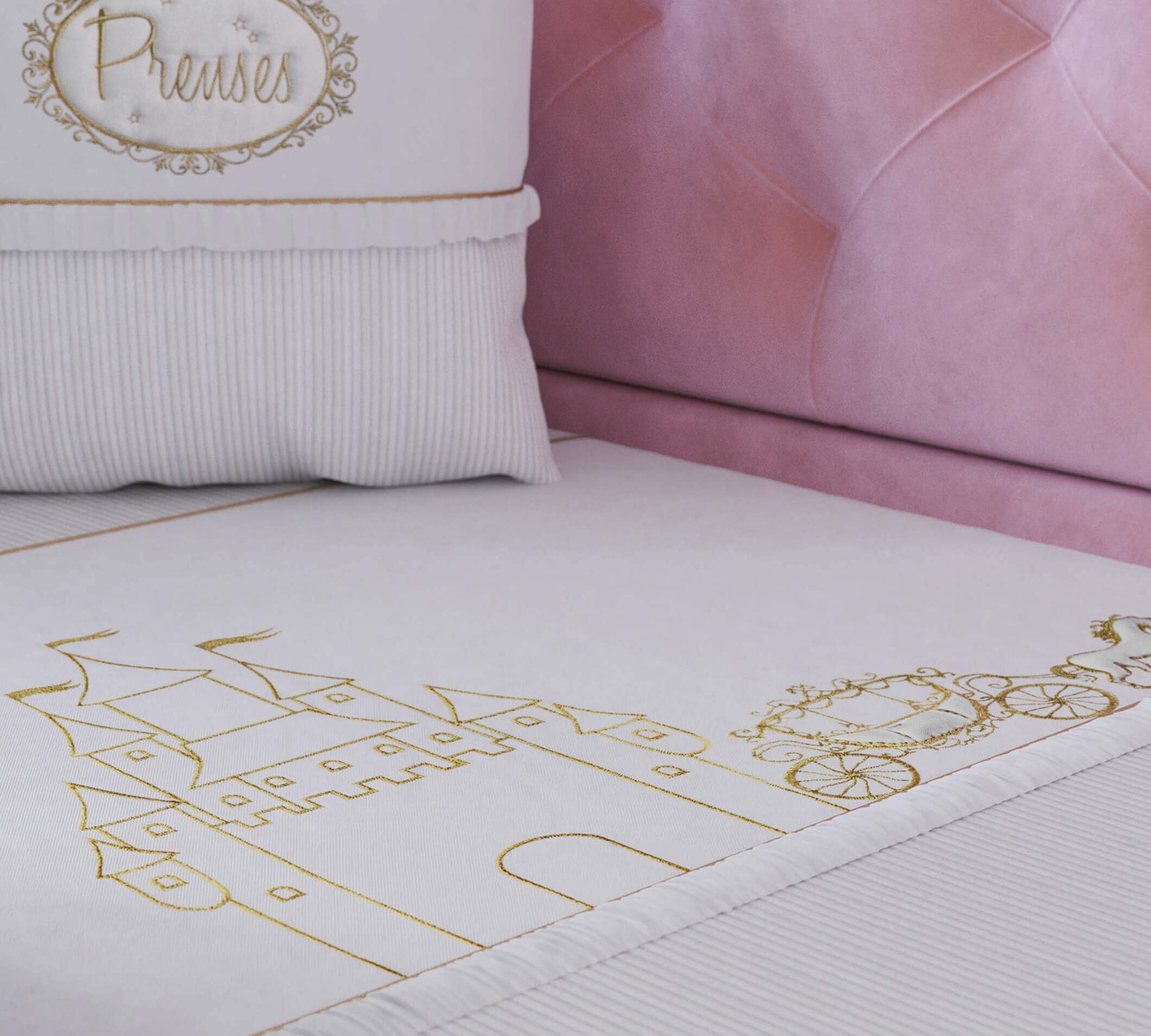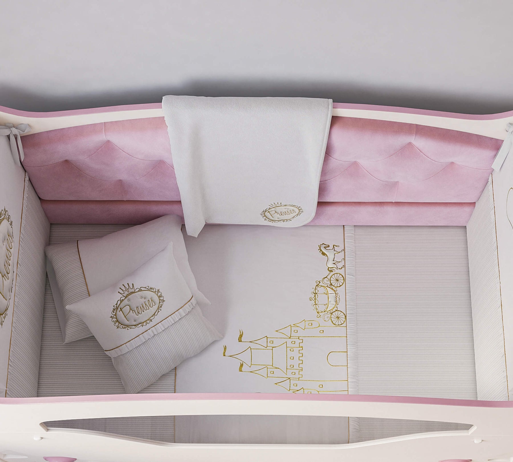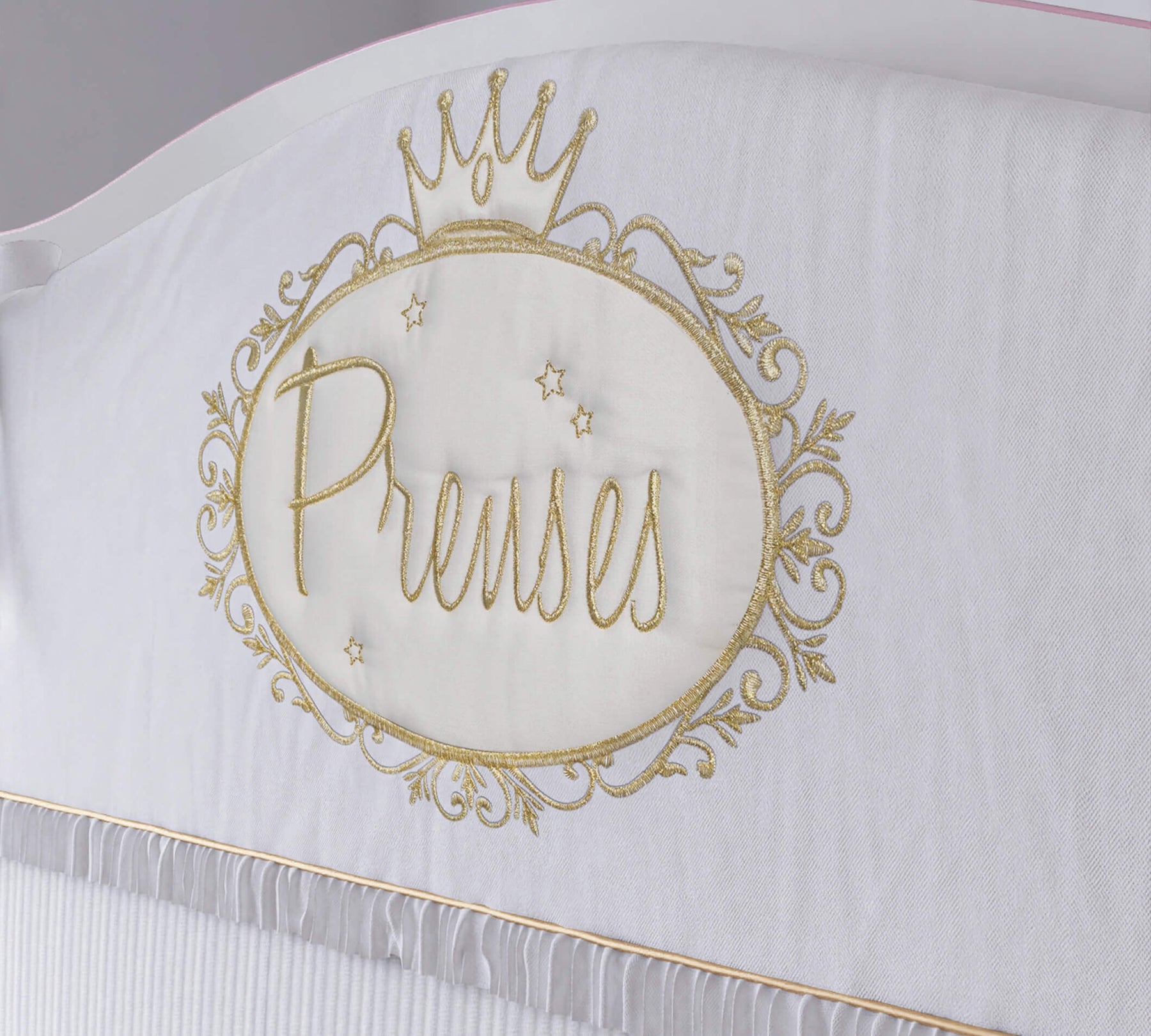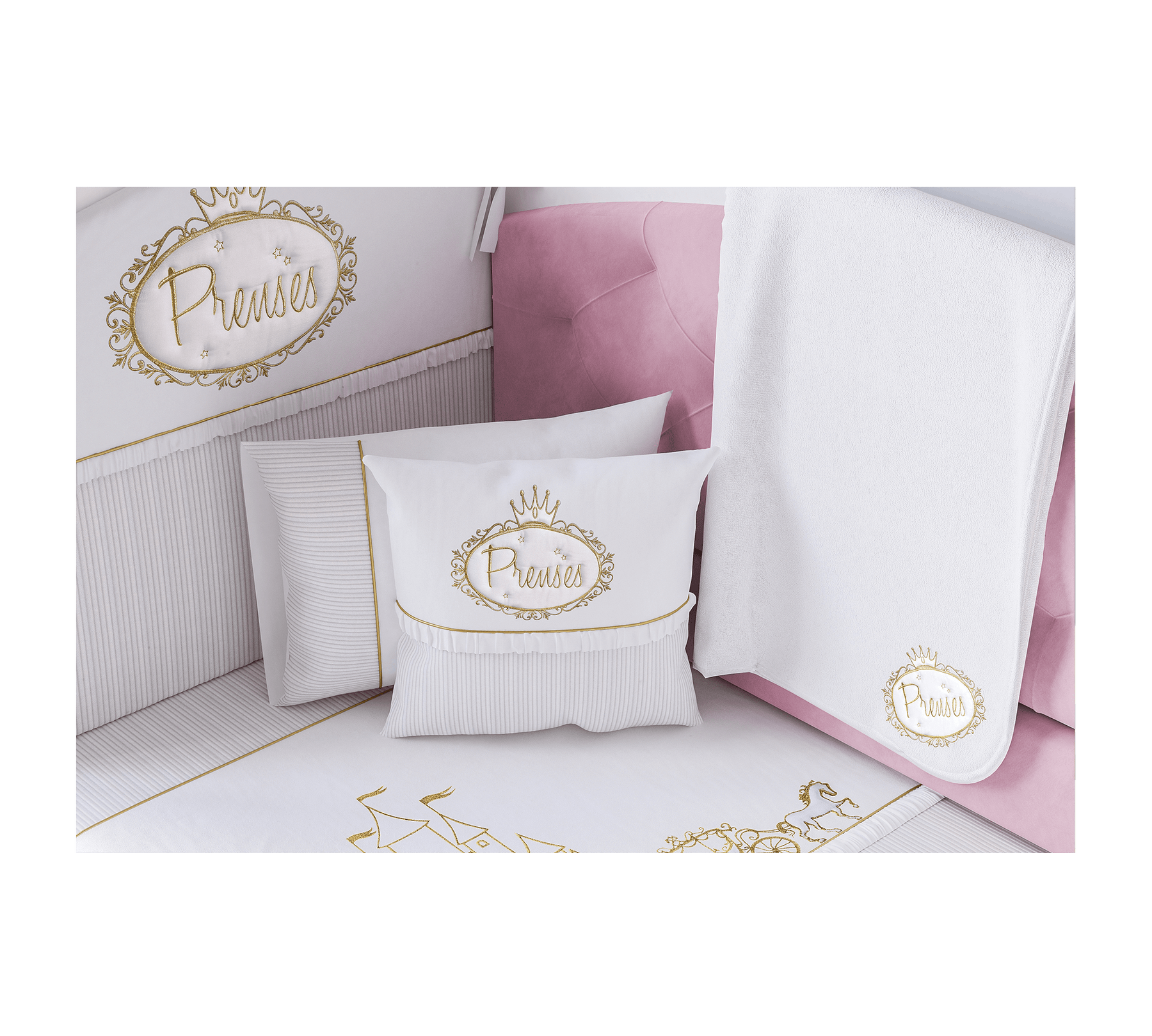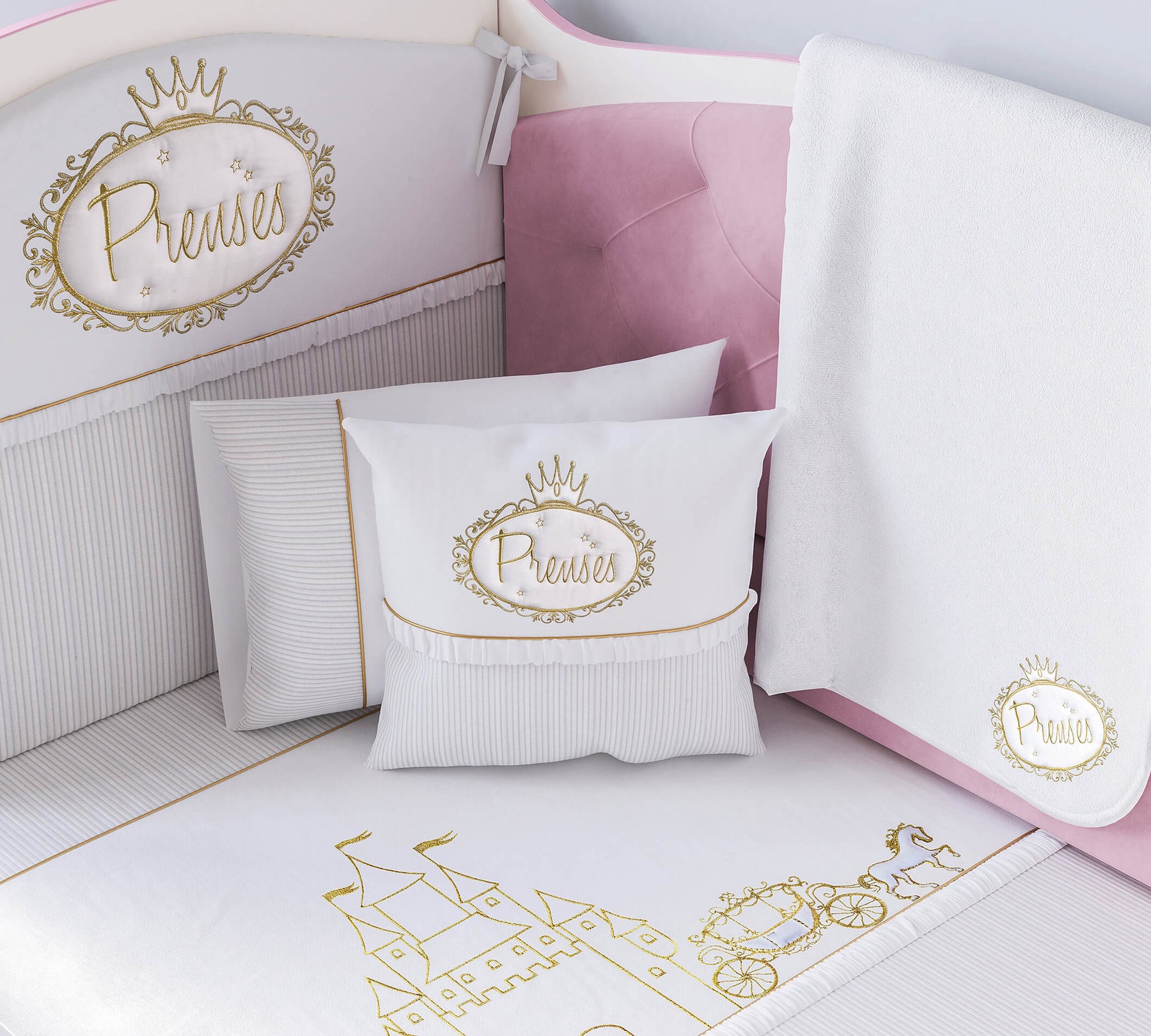 Незалежно від того, наскільки зручним є ліжечко вашої маленької принцеси, для здорового сну важливо використовувати відповідний комплект постільної білизни. Набір Prenses складається з 7 елементів: захист для голови, захист для ніг, ковдра, флісова ковдрочка, декоративна подушка, наволочка та простирадло на резинці. Усі матеріали виготовлені з урахуванням здоров'я вашої дитини. У комплект включено все необхідне для солодкого сну… навіть любов.