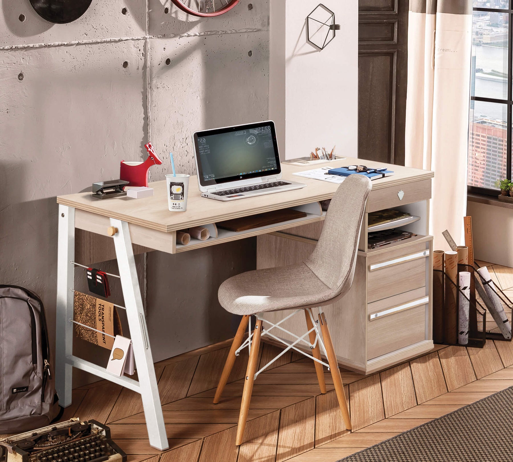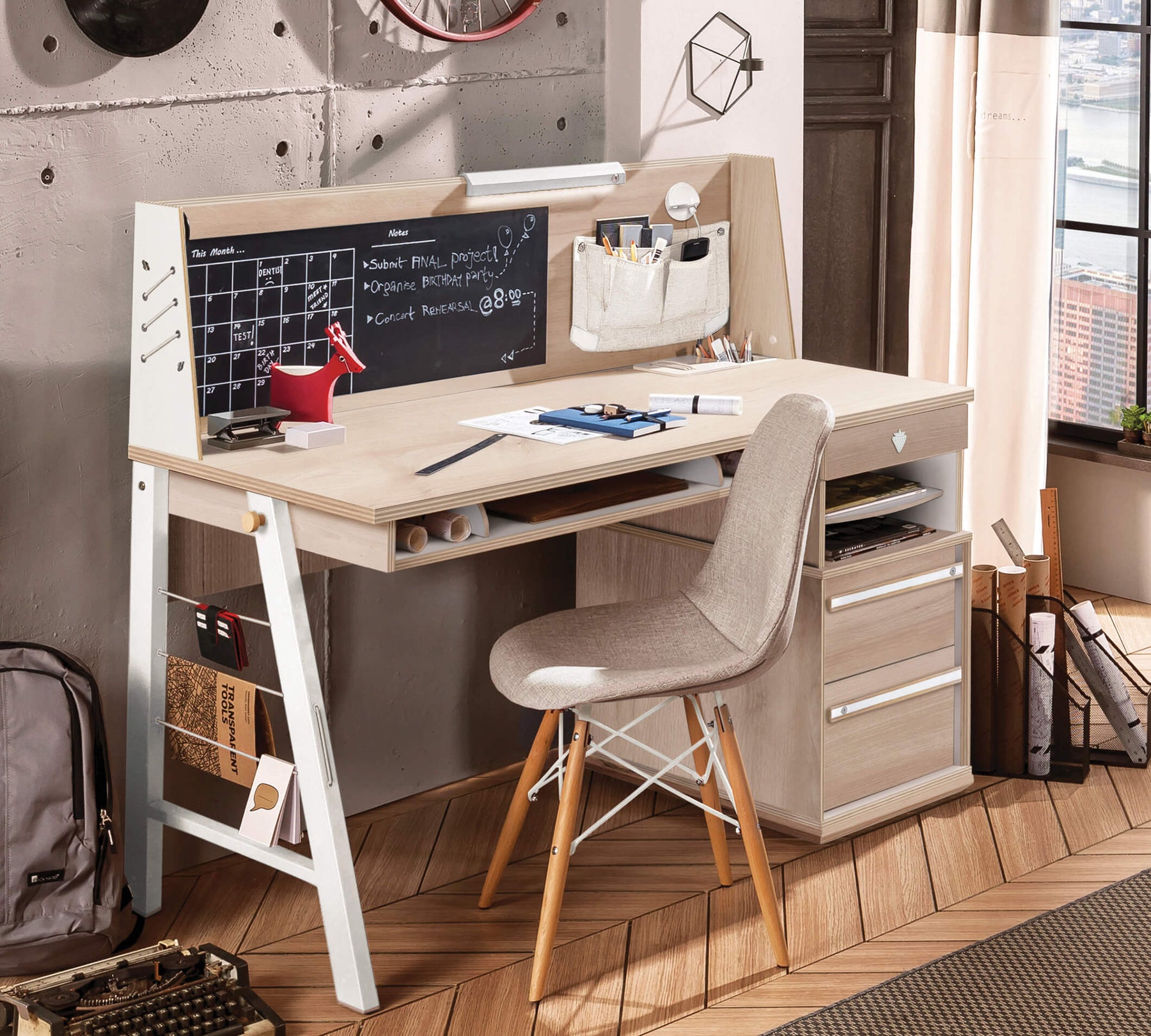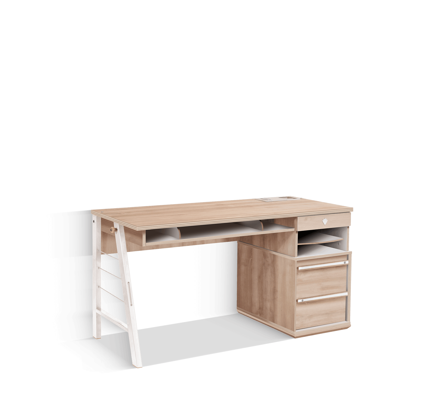 Навчальний стіл є однією з важливих потреб для підлітків. Стіл Duo, що виділяється своїм функціональним дизайном і мінімалістичними лініями, пропонує свободу для створення власного простору з трьома ящиками та двома відкритими полицями. Для збільшення концентрації на навчанні рекомендується поєднувати з робочим блоком Duo.