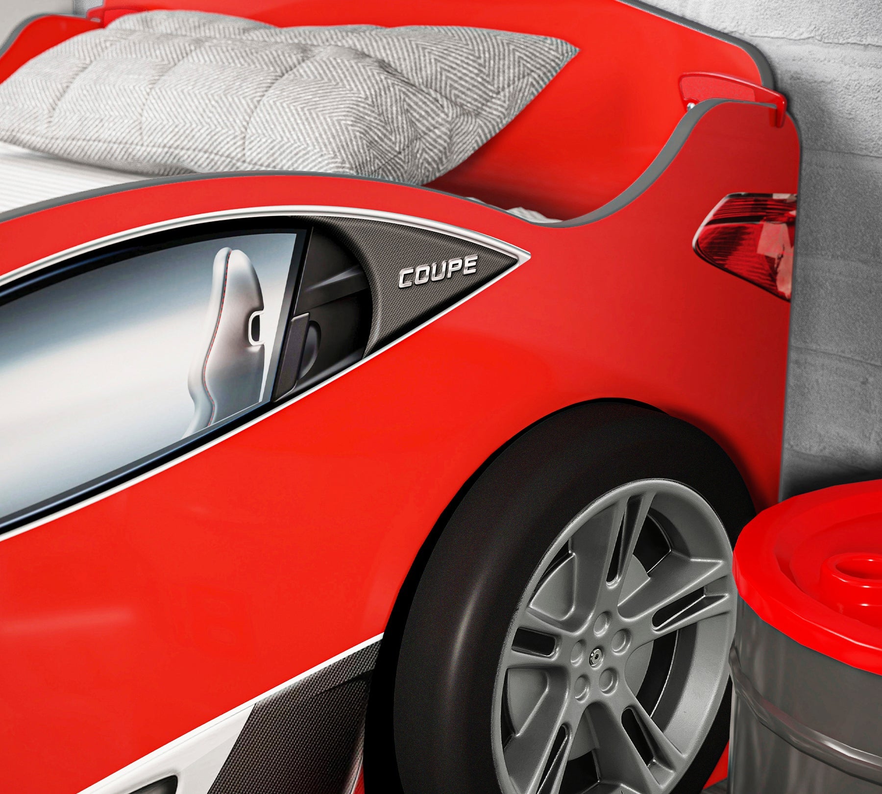 Дитяче ліжко Coupe car підійде для всіх маленьких автолюбителів які мріють про автоперегони. Особливістю данної моделі є висувна нижня частина яка придназначена для зберігання спальної білизни (або інших речей на ваш розсуд).