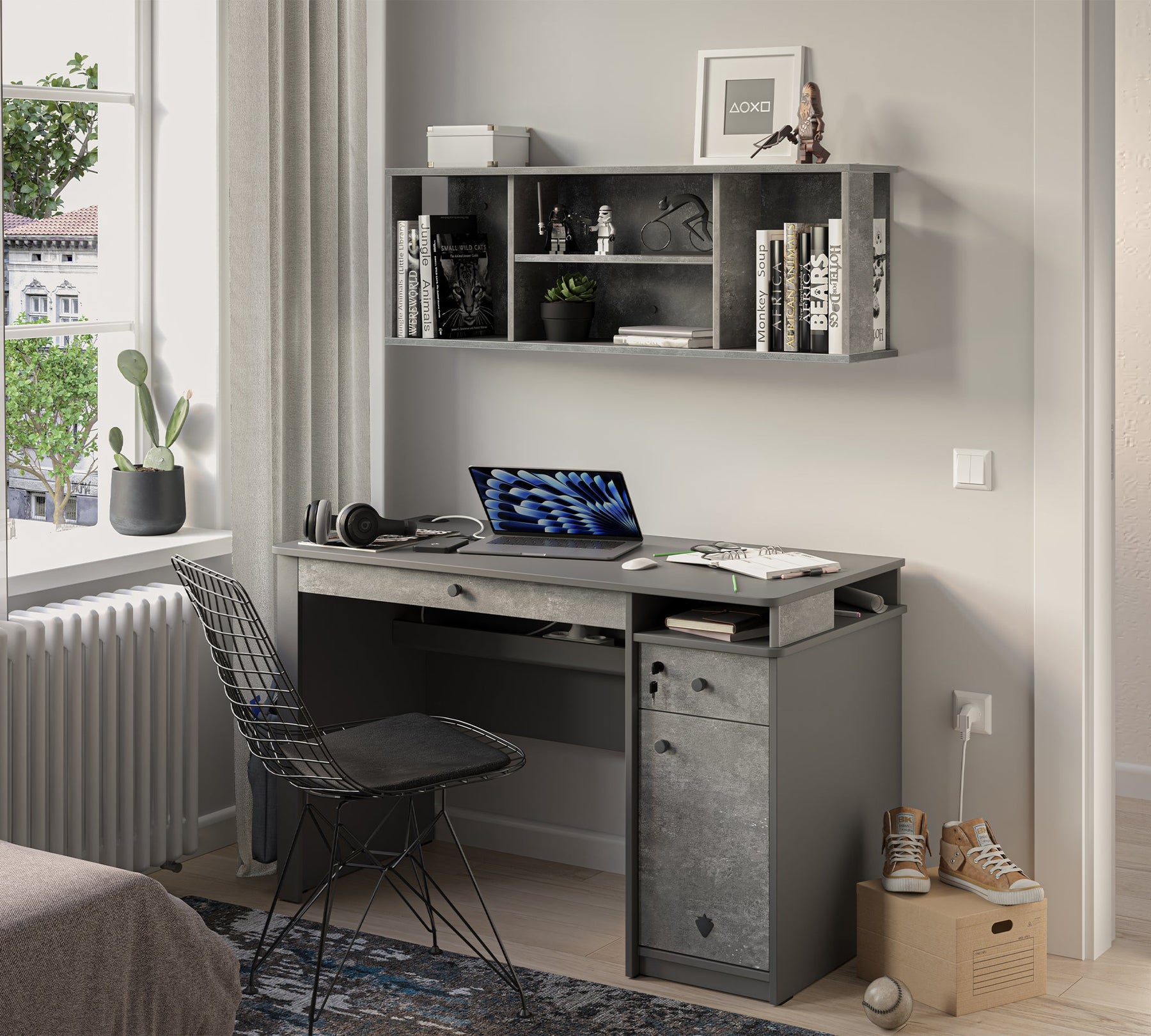 Современный и лаконичный дизайн Широкого рабочего стола Space Gray создает аккуратное и эффективное рабочее пространство в комнате для молодежи. Благодаря эргономичным размерам он обеспечивает комфортное использование на длительное время, а два ящика и закрытое отделение позволяют легко организовать вещи.