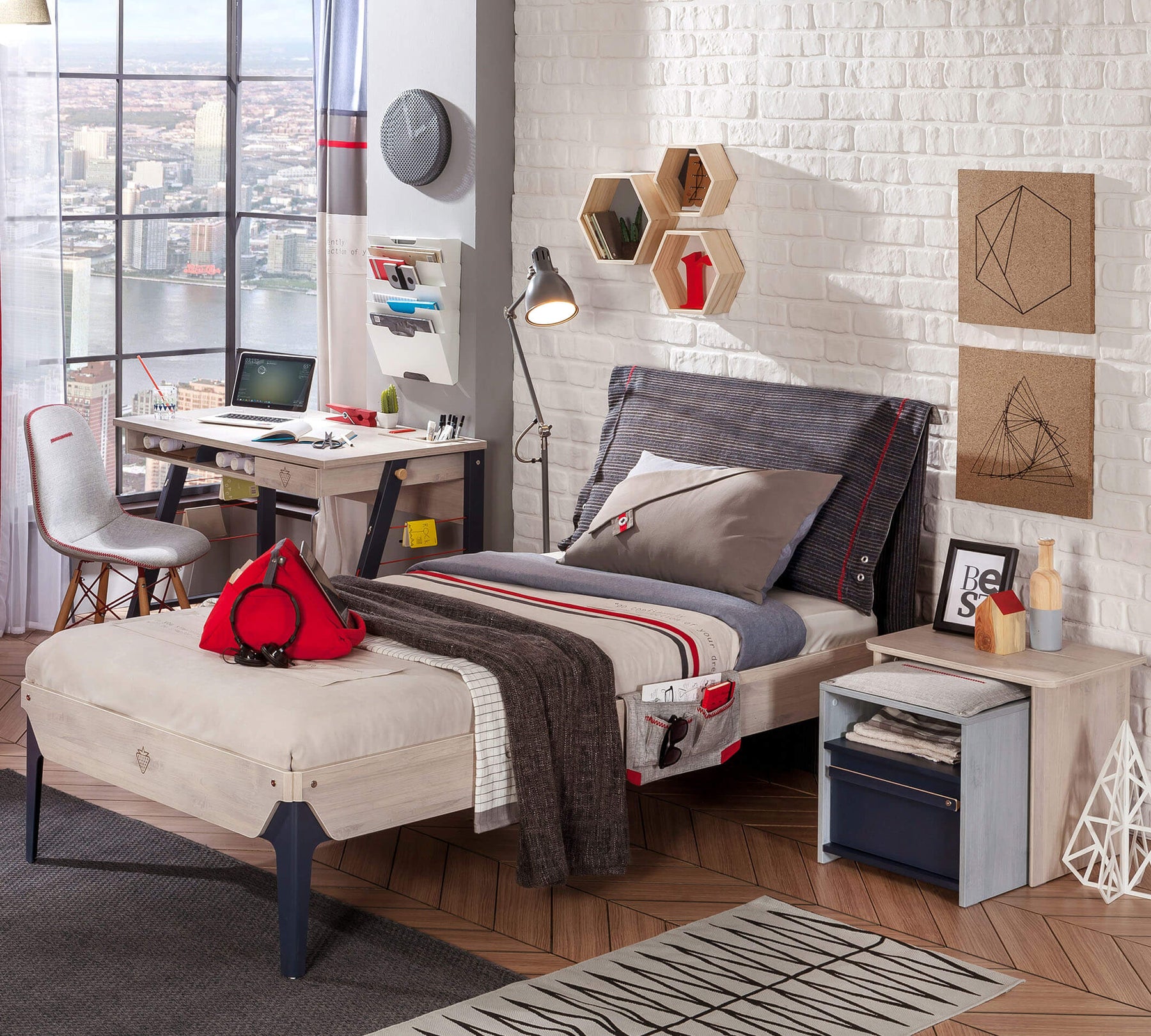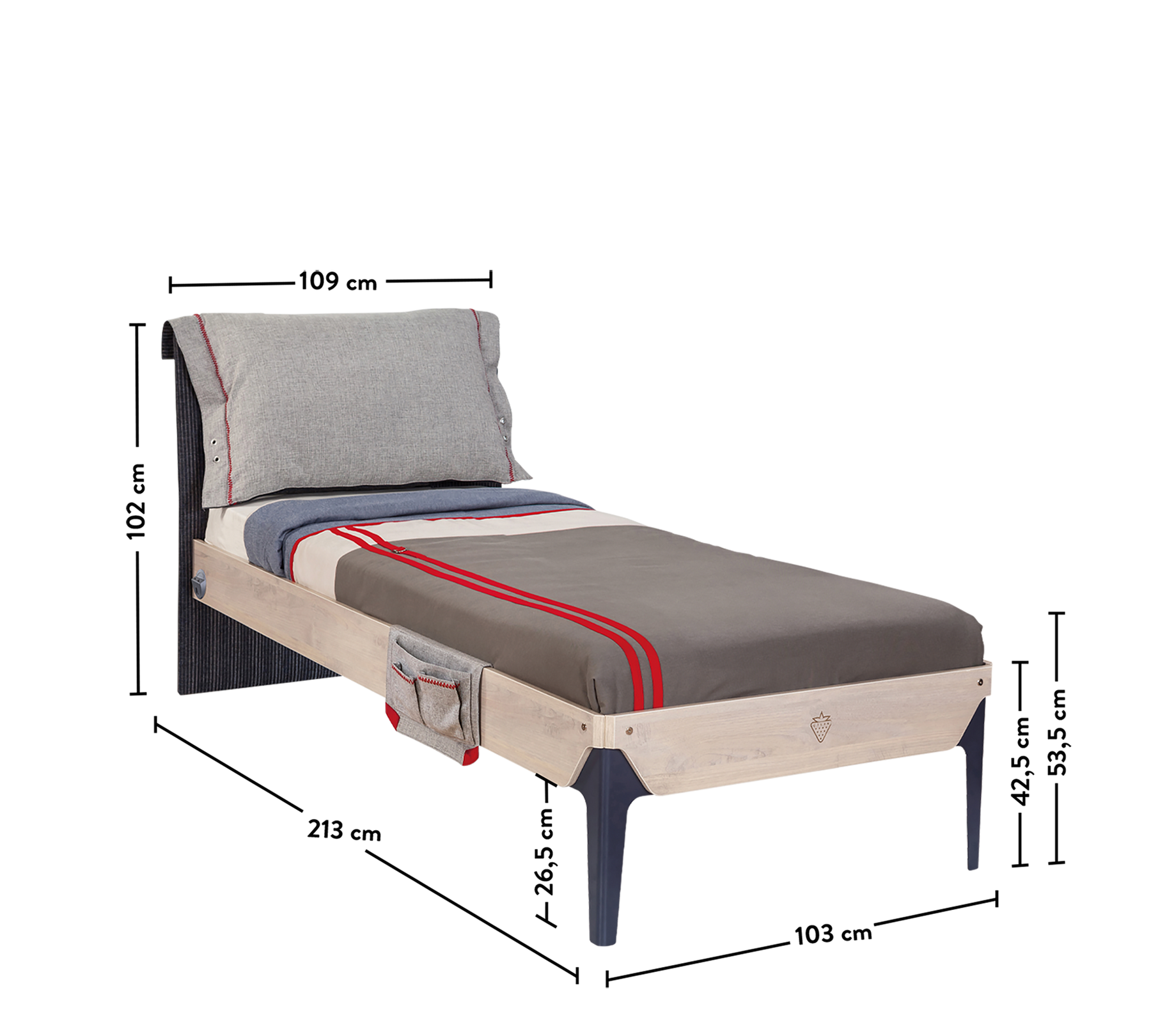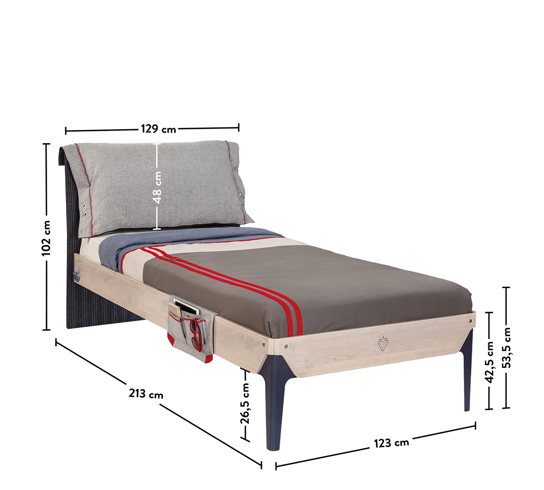 Обивка из ткани и двухсторонний мягкий дизайн изголовья обеспечивают комфорт не только во время сна, но и во время отдыха в кровати. Тканевый карман сбоку можно использовать для организации личных вещей, таких как планшет, книга, очки. С простым и современным дизайном Трио Кариола создает спокойную атмосферу в жизненном пространстве молодежи.