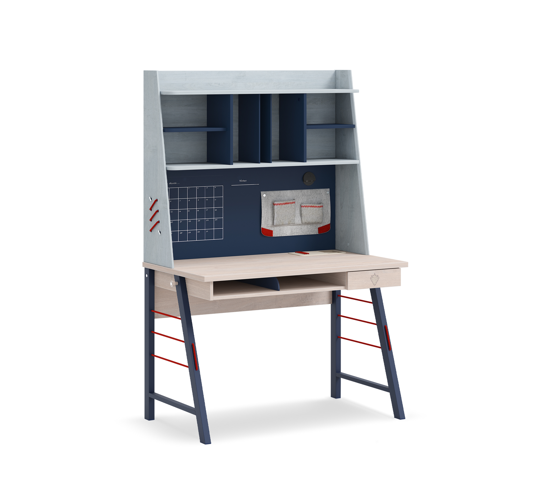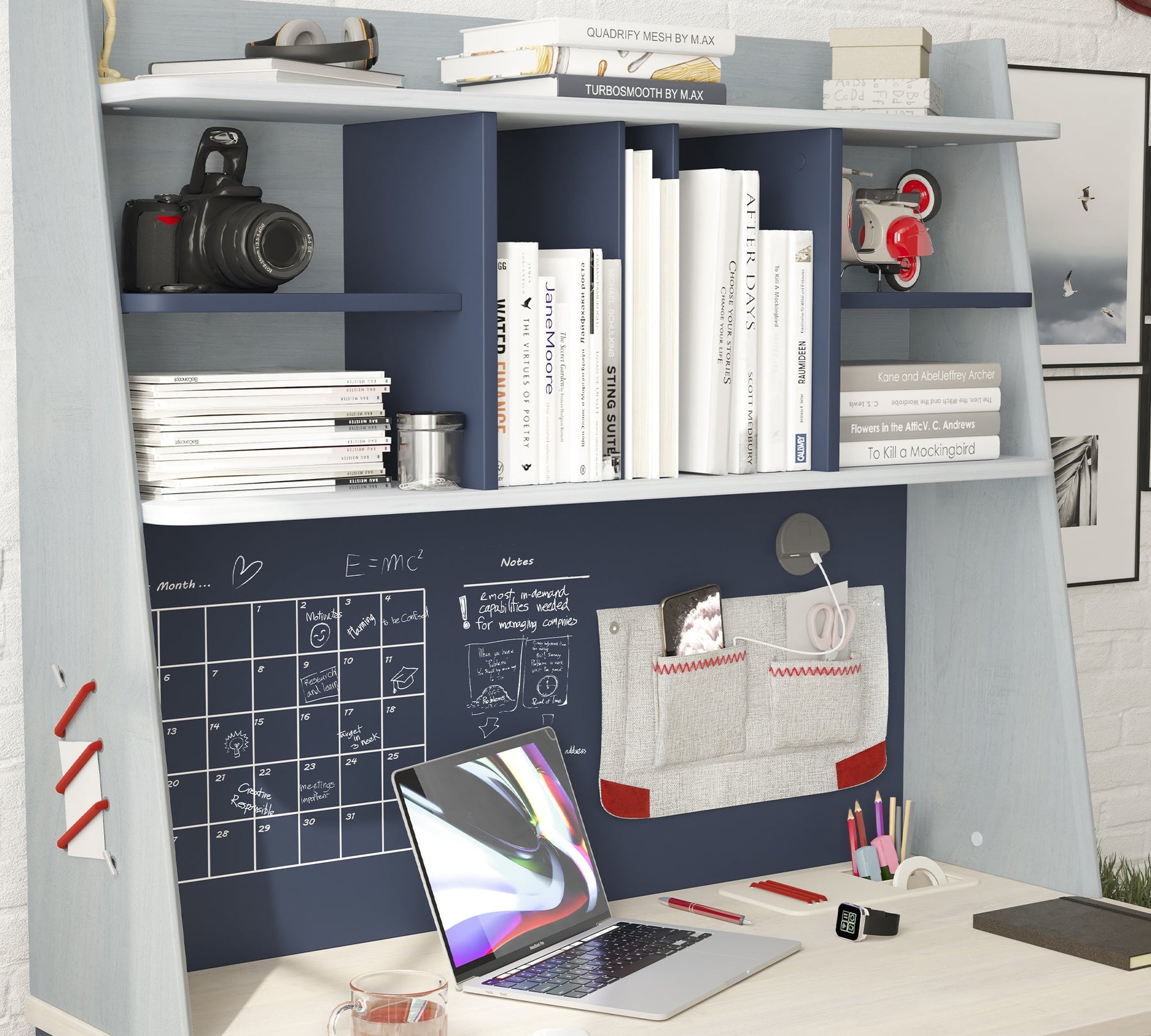 Высокий рабочий модуль Trio, сочетающий синие и темно-синие детали с текстурой натурального дерева, разработан для того, чтобы сделать рабочее пространство подростка более организованным и продуктивным. Этот модуль, предназначенный для использования вместе со Средним рабочим столом Trio Medium, благодаря своей высокой конструкции предлагает дополнительное место для хранения книг, тетрадей и мелких личных вещей.